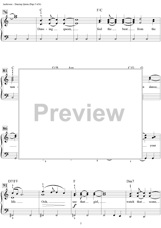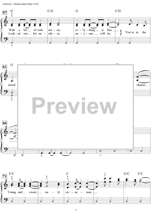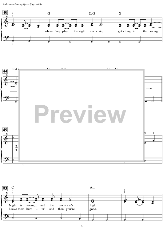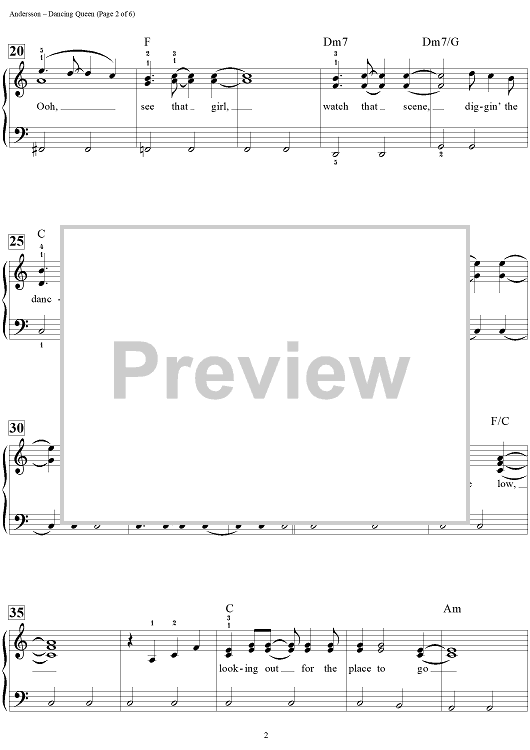 Digital Sheet Music for Dancing Queen by Dan Coates, ABBA, Benny Andersson, Bjorn Ulvaeus, Stig Anderson scored for Easy Piano/Vocal/Chords; id:444021