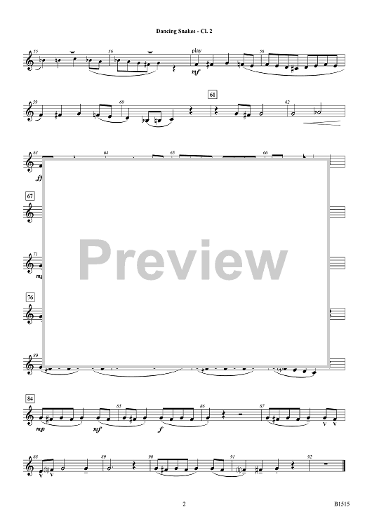Digital Sheet Music for Dancing Snakes - Bb Clarinet 2 by Neil Simon scored for Concert Band; id:439849