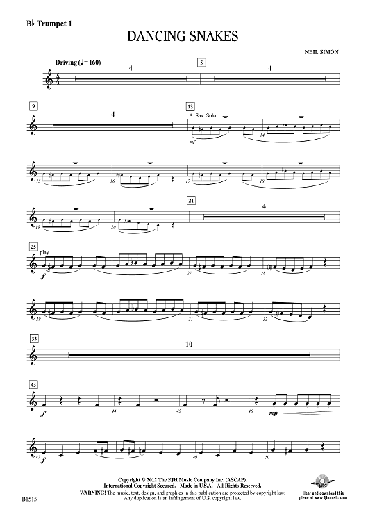 "Dancing Snakes - Bb Trumpet 1" Sheet Music by Neil Simon