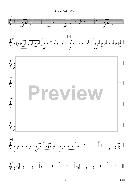 Digital Sheet Music for Dancing Snakes - Bb Trumpet 2 by Neil Simon scored for Concert Band; id:439856