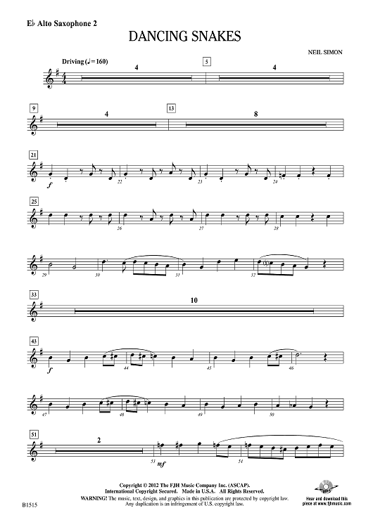 "Dancing Snakes - Eb Alto Sax 2" Sheet Music by Neil Simon