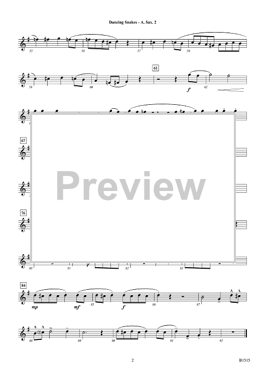 Digital Sheet Music for Dancing Snakes - Eb Alto Sax 2 by Neil Simon scored for Concert Band; id:439852