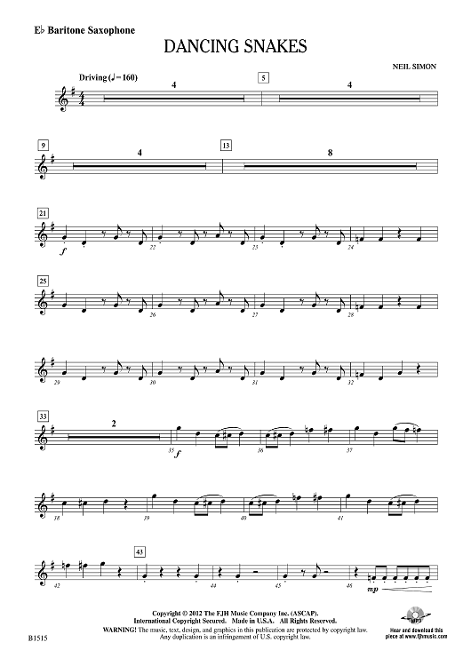 "Dancing Snakes - Eb Baritone Sax" Sheet Music by Neil Simon