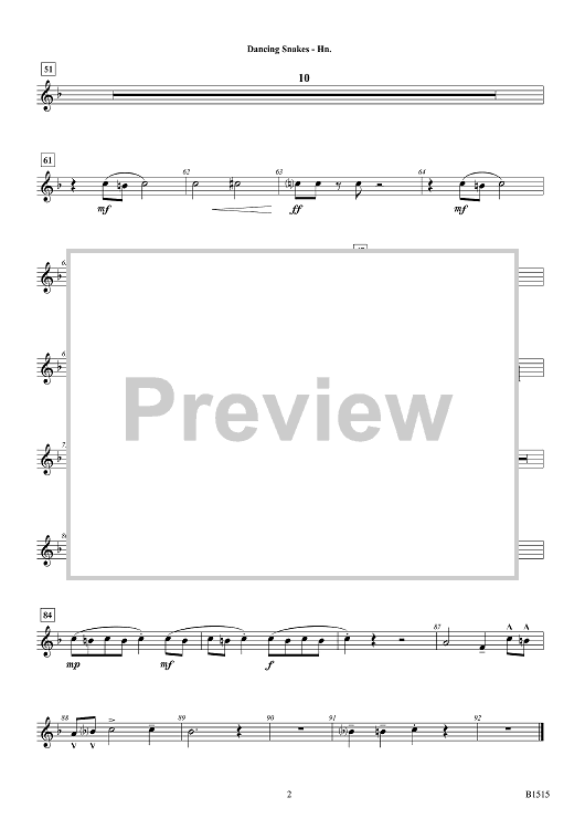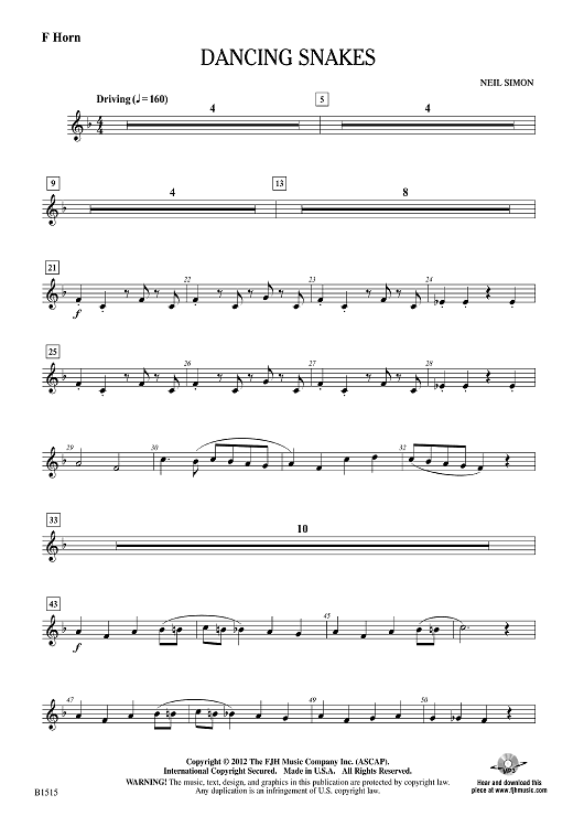 Digital Sheet Music for Dancing Snakes - F Horn by Neil Simon scored for Concert Band; id:439857