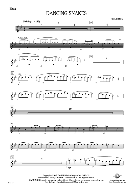 Digital Sheet Music for Dancing Snakes - Flute by Neil Simon scored for Concert Band; id:439845