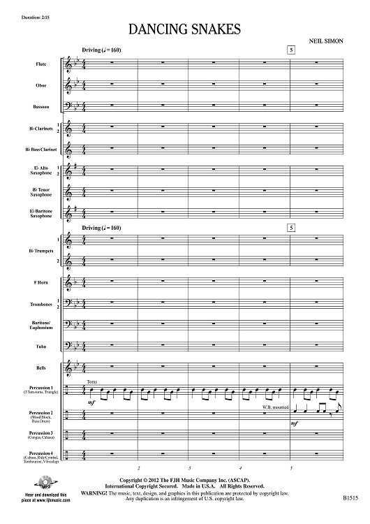 Digital Sheet Music for Dancing Snakes - Score by Neil Simon scored for Concert Band; id:439843