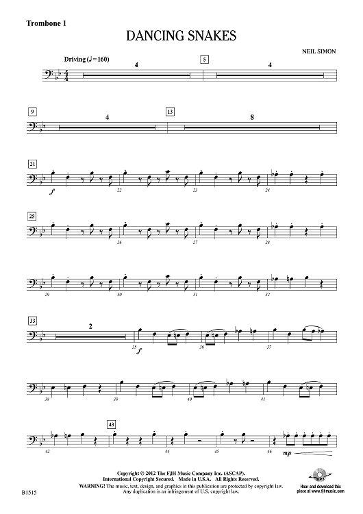 "Dancing Snakes - Trombone 1" Sheet Music by Neil Simon