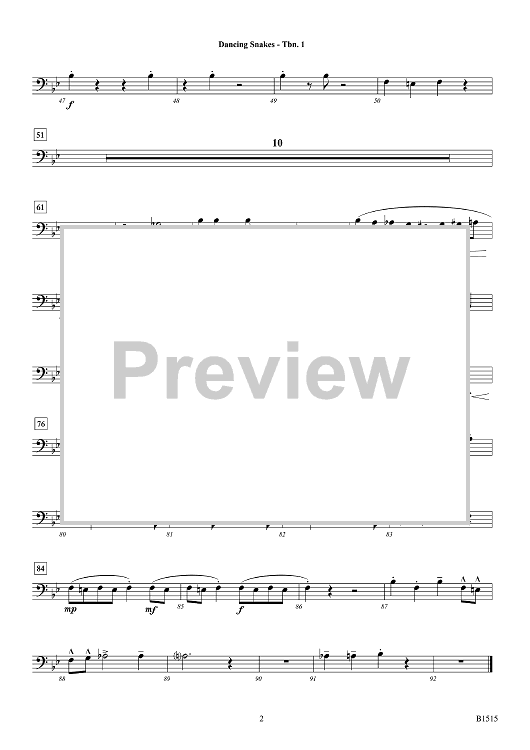 Digital Sheet Music for Dancing Snakes - Trombone 1 by Neil Simon scored for Concert Band; id:439858
