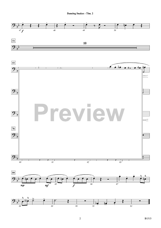 Digital Sheet Music for Dancing Snakes - Trombone 2 by Neil Simon scored for Concert Band; id:439859