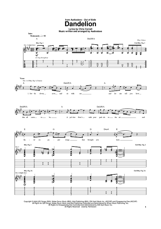 Digital Sheet Music for Dandelion by Audioslave, Chris Cornell scored for Guitar Tab; id:386284