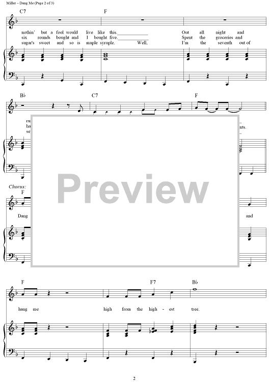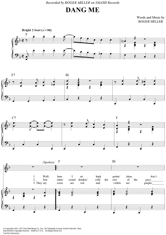 Digital Sheet Music for Dang Me by Roger Miller scored for Piano/Vocal/Chords; id:362908
