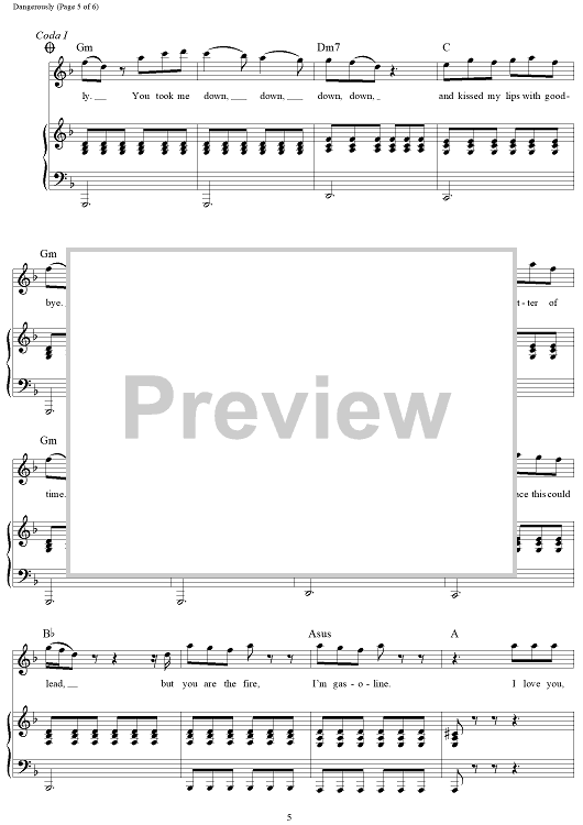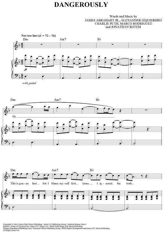 Digital Sheet Music for Dangerously by Jonathan Rotem, Charlie Puth, Alexander Izquierdo, James Abrahart, Marco Rodriguez scored for Piano/Vocal/Chords; id:463005