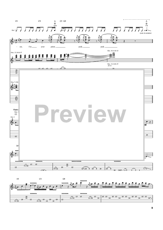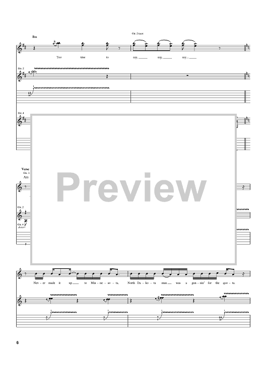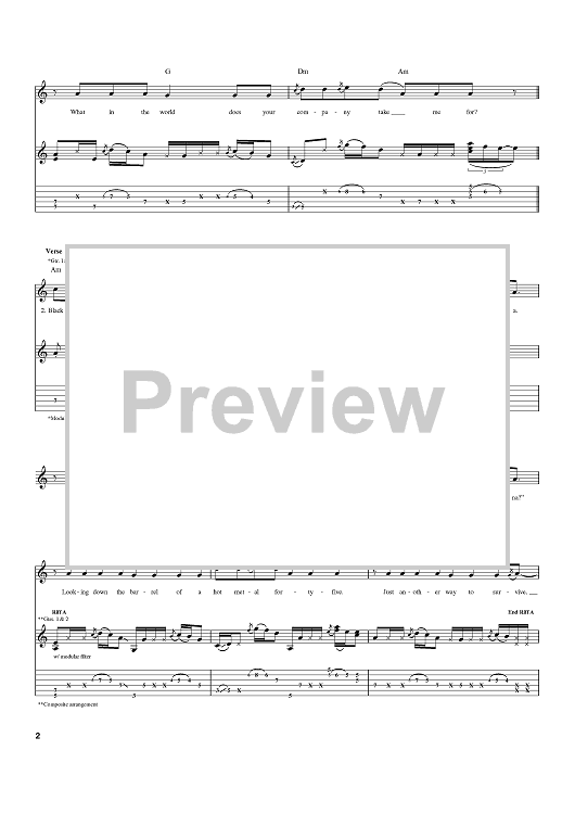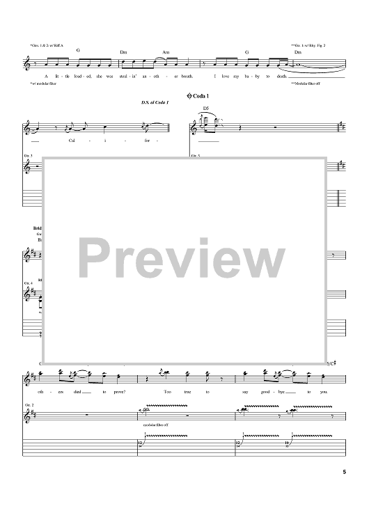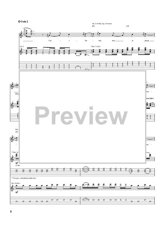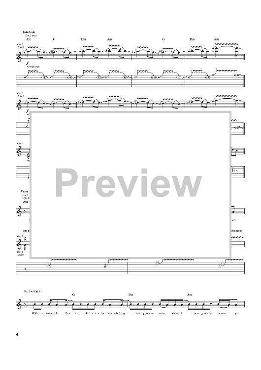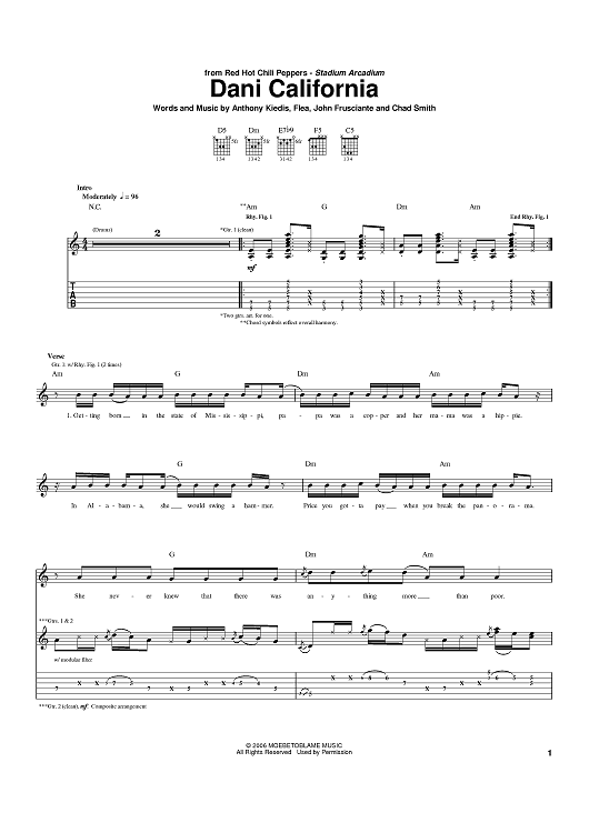 Digital Sheet Music for Dani California by Flea, John Frusciante, Anthony Kiedis, Red Hot Chili Peppers, Chad Smith scored for Guitar Tab; id:391493