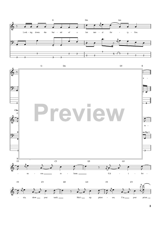 Digital Sheet Music for Dani California by Flea, John Frusciante, Anthony Kiedis, Red Hot Chili Peppers, Chad Smith scored for Bass Tab; id:391987