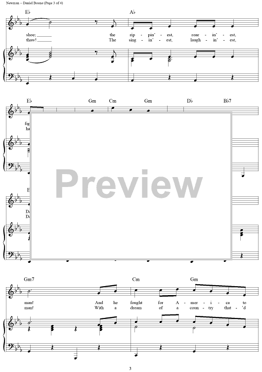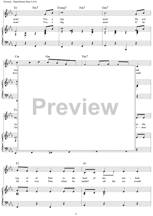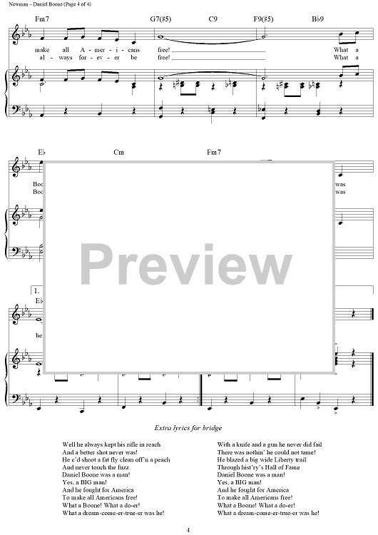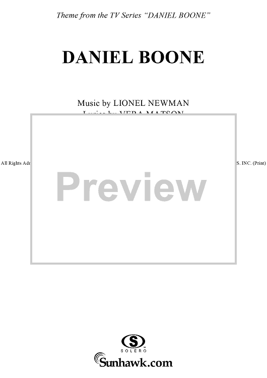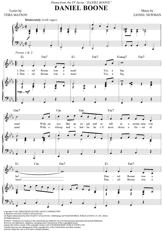 Digital Sheet Music for Daniel Boone by Vera Matson, Lionel Newman scored for Piano/Vocal/Chords; id:241832
