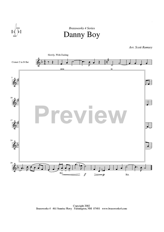 Digital Sheet Music for Danny Boy - Cornet 2/Trumpet 2 by Scott A. Ramsey scored for Brass Quartet; id:316865