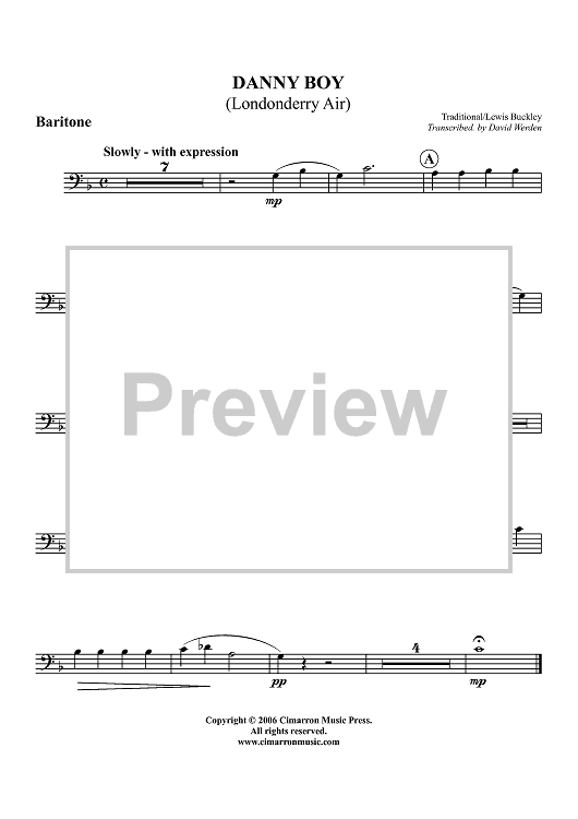 Digital Sheet Music for Danny Boy (Londonderry Air) - Baritone BC/TC by David Werden, Traditional, Lewis J. Buckley scored for Trumpet/Euphonium Solo with Brass Band; id:360573