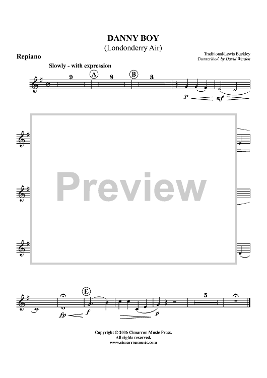 Digital Sheet Music for Danny Boy (Londonderry Air) - Repiano by David Werden, Traditional, Lewis J. Buckley scored for Trumpet/Euphonium Solo with Brass Band; id:360568