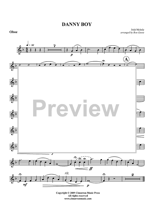 Digital Sheet Music for Danny Boy - Oboe by Ron Geese, Irish Traditional scored for Woodwind Quintet; id:409801