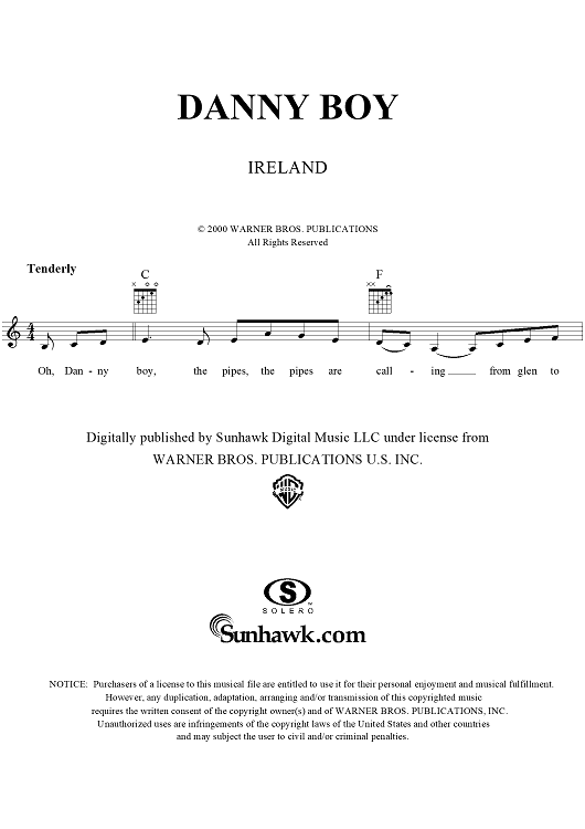 Digital Sheet Music for Danny Boy by Traditional scored for Lead Sheet; id:292683