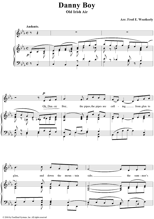 Digital Sheet Music for Danny Boy by Traditional, Frederic Weatherly scored for Piano/Vocal; id:94609