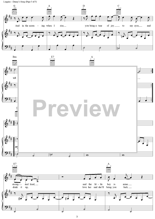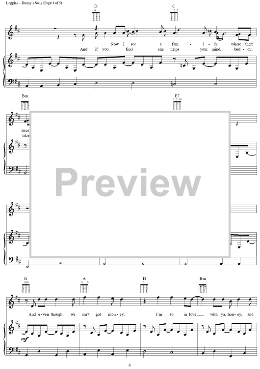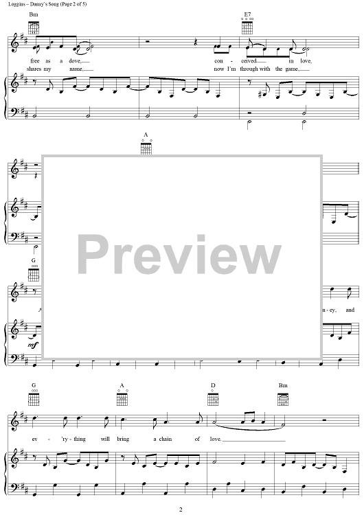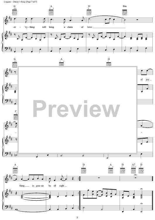 Digital Sheet Music for Danny's Song by Kenny Loggins, Loggins and Messina scored for Piano/Vocal/Chords; id:250859