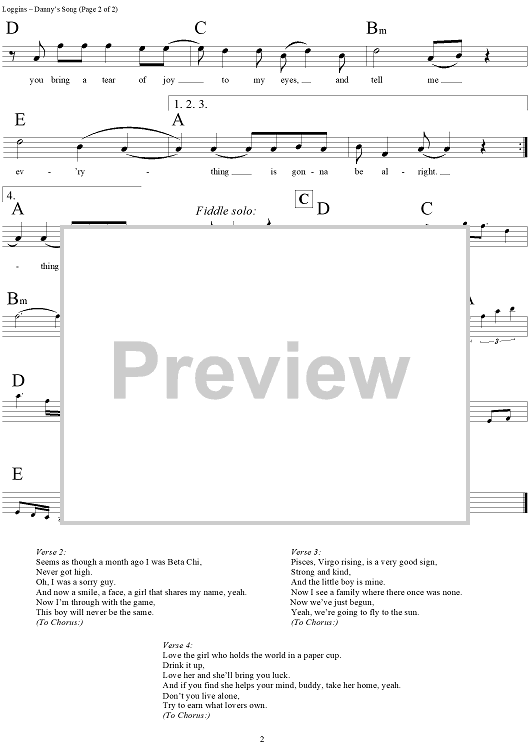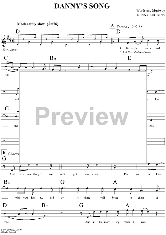 Digital Sheet Music for Danny's Song by Kenny Loggins scored for Lead Sheet; id:293891