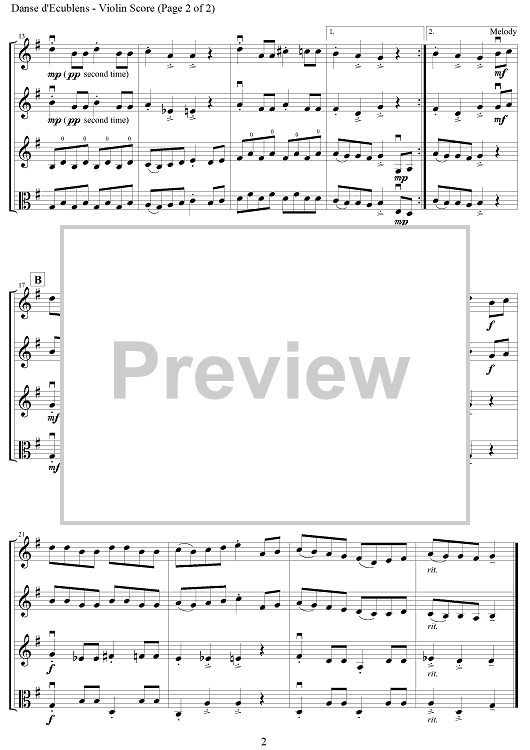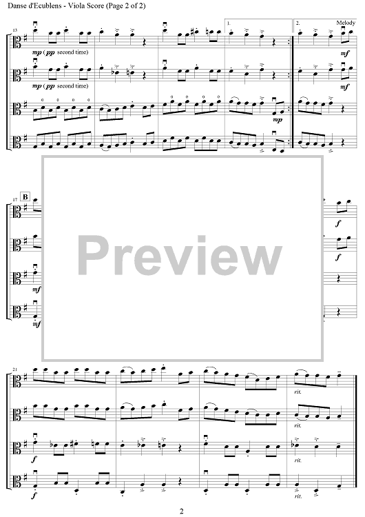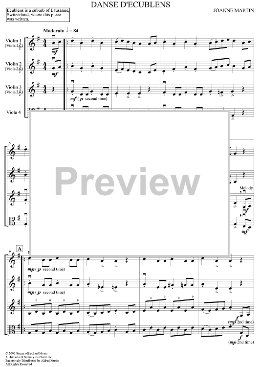 Digital Sheet Music for Danse d'Ecublens by Joanne Martin scored for Viola and violin ensemble; id:498031