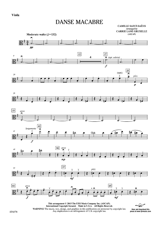 Digital Sheet Music for Danse Macabre - Viola by Camille Saint-Saëns, Carrie Lane Gruselle scored for Orchestra; id:455607