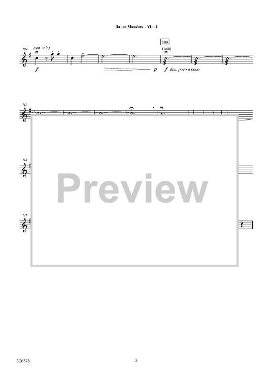 Digital Sheet Music for Danse Macabre - Violin 1 by Camille Saint-Saëns, Carrie Lane Gruselle scored for Orchestra; id:455604
