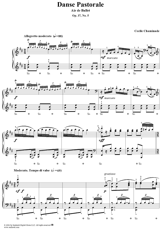 Digital Sheet Music for Danse Pastorale, Op. 37, No. 5 by Cécile Chaminade scored for Piano Solo; id:303929