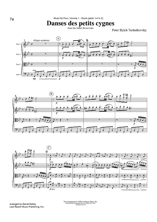 Digital Sheet Music for Danses des petits cygnes - from the ballet Swan Lake - Score by , Peter Ilyich Tchaikovsky, Daniel Kelley scored for Instrumental Quartet; id:423505