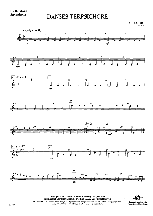 Digital Sheet Music for Danses Terpsichore - Eb Baritone Sax by Chris Sharp scored for Concert Band; id:439334