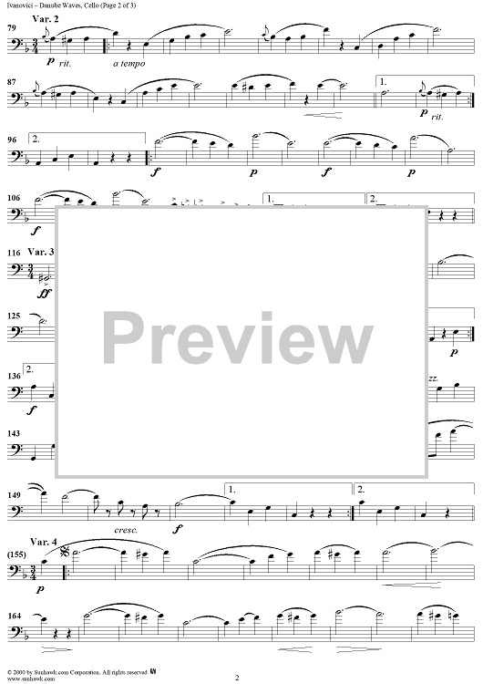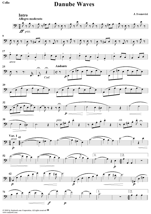"Danube Waves - Cello" Sheet Music by Ion Ivanovici