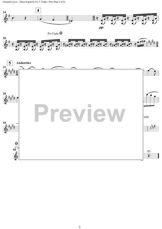 "Danza Española No. 5 - Violin 1" Sheet Music by Enrique Granados