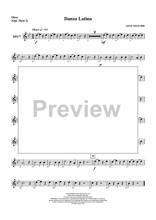 "Danza Latina - Oboe (Opt. Flute 2)" Sheet Music by Gene Milford