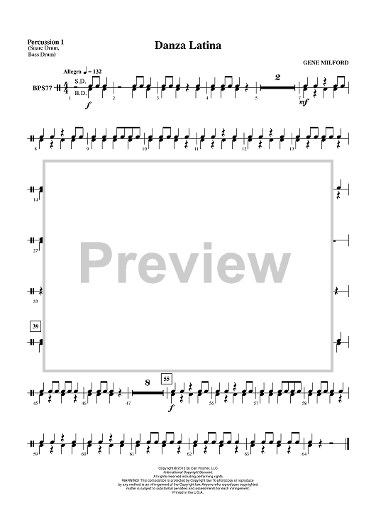 "Danza Latina - Percussion 1" Sheet Music by Gene Milford