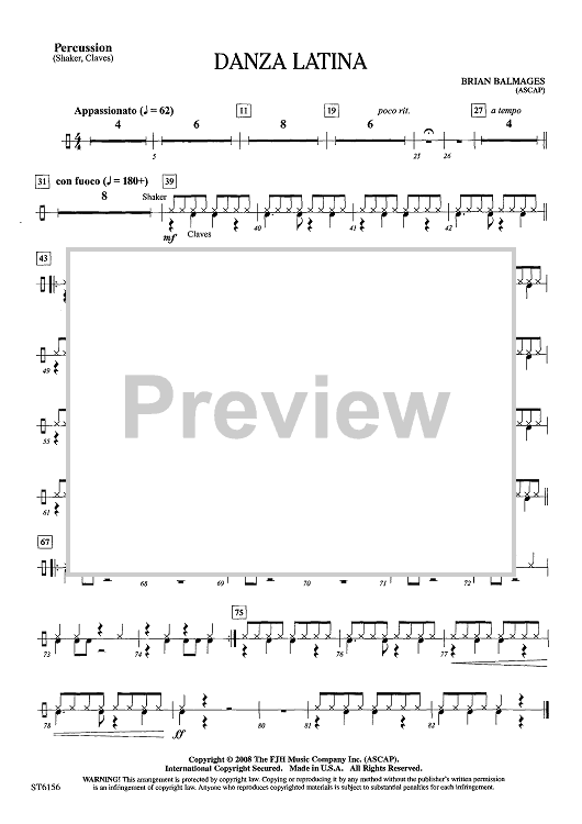 "Danza Latina - Percussion" Sheet Music by Brian Balmages