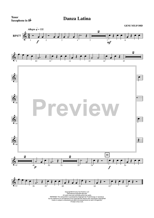 Digital Sheet Music for Danza Latina - Tenor Sax by Gene Milford scored for Concert Band; id:435407