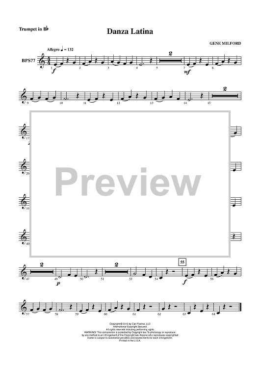 Digital Sheet Music for Danza Latina - Trumpet in Bb by Gene Milford scored for Concert Band; id:435409