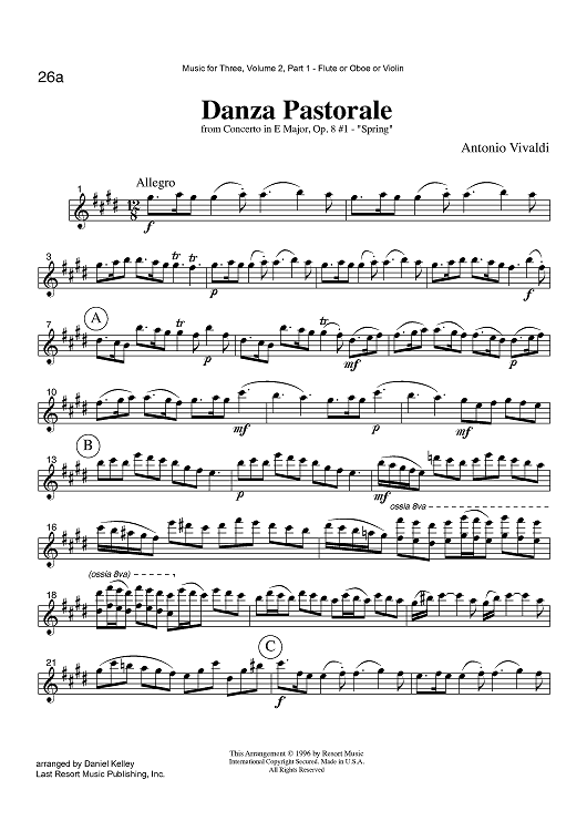 Digital Sheet Music for Danza Pastorale - from Concerto in E Major, Op. 8 #1 - "Spring" - Part 1 Flute, Oboe or Violin by , Antonio Vivaldi, Daniel Kelley scored for Instrumental Trio; id:422701