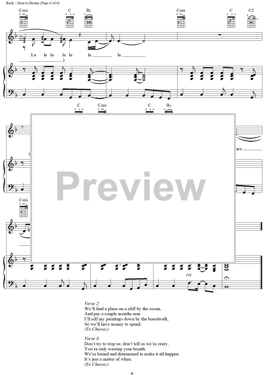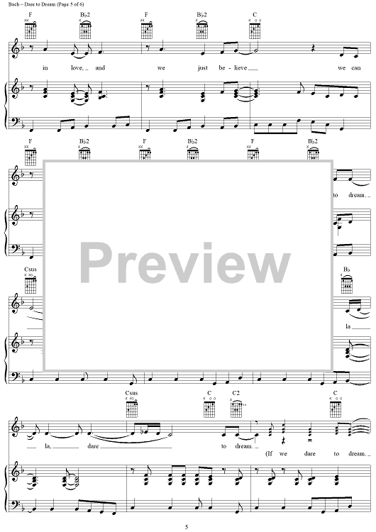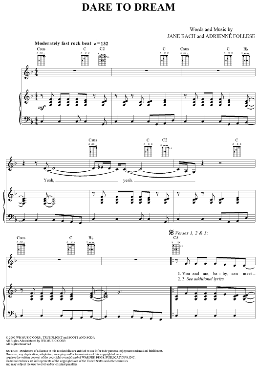 Digital Sheet Music for Dare To Dream by Jo Dee Messina, Jane Bach, Adrienne Follese scored for Piano/Vocal/Chords; id:290050