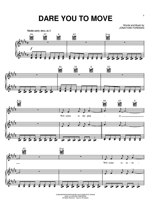 Digital Sheet Music for Dare You To Move by Jonathan Mark Foreman, Switchfoot scored for Piano/Vocal/Chords; id:372021