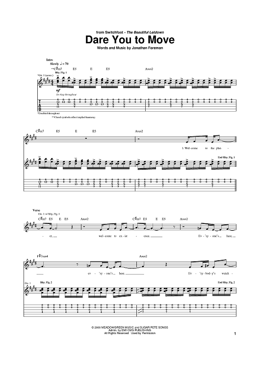 Digital Sheet Music for Dare You To Move by Jonathan Mark Foreman, Switchfoot scored for Guitar Tab; id:381966