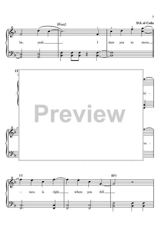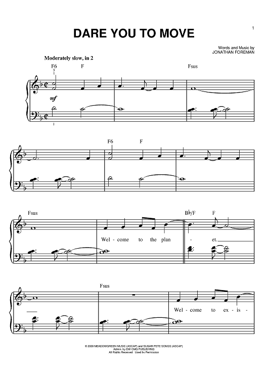 Digital Sheet Music for Dare You To Move by Jonathan Mark Foreman, Switchfoot scored for Easy Piano; id:386307