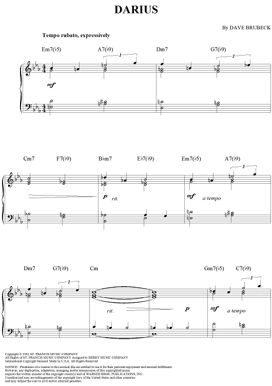 Digital Sheet Music for Darius by Dave Brubeck scored for Piano Solo; id:275821