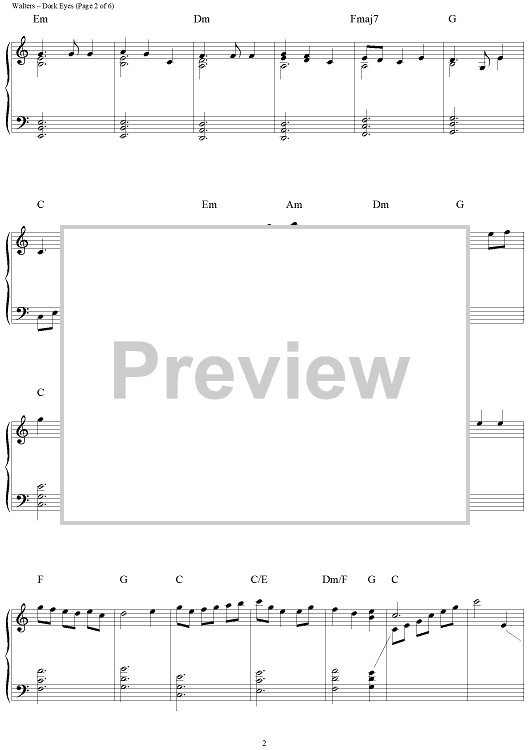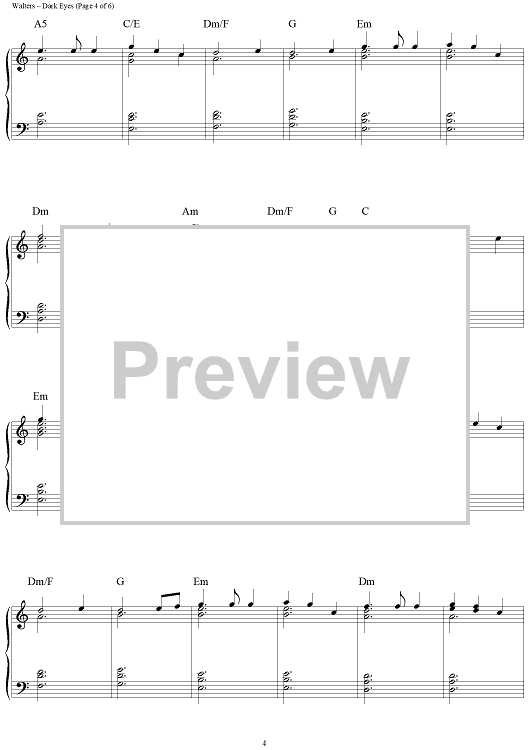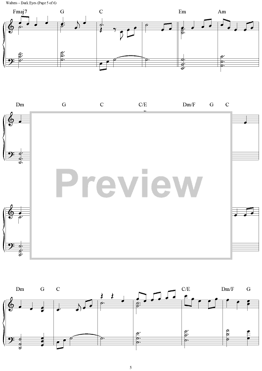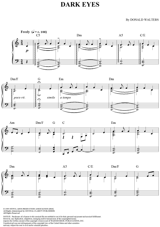 Digital Sheet Music for Dark Eyes by Derek Bell, Donald Walters scored for Folk Harp Solo; id:220563