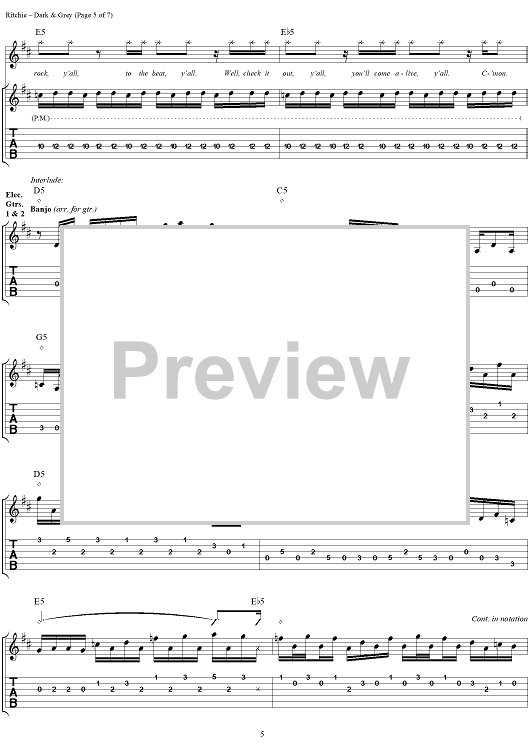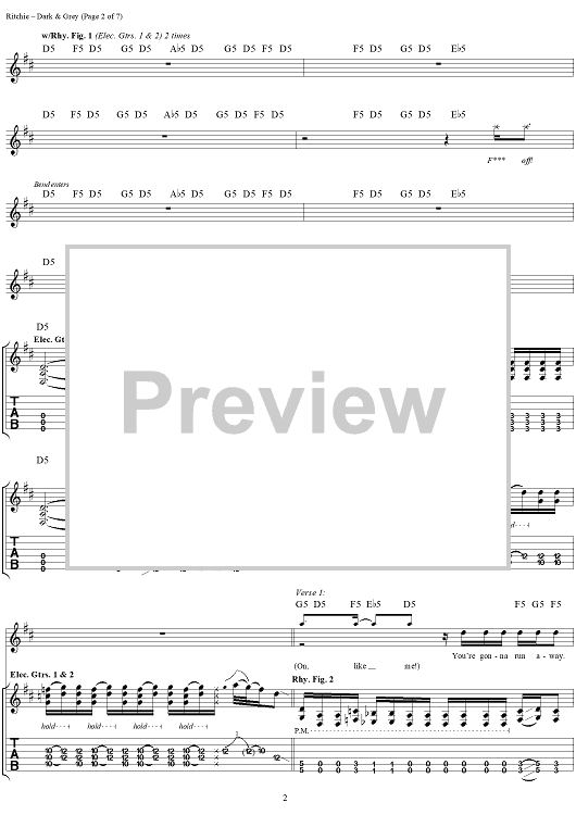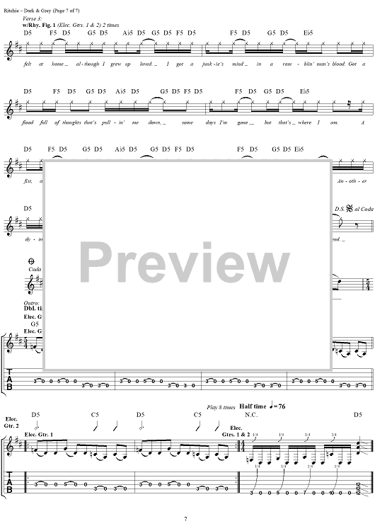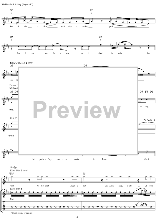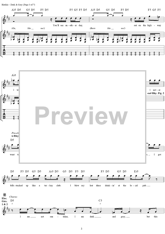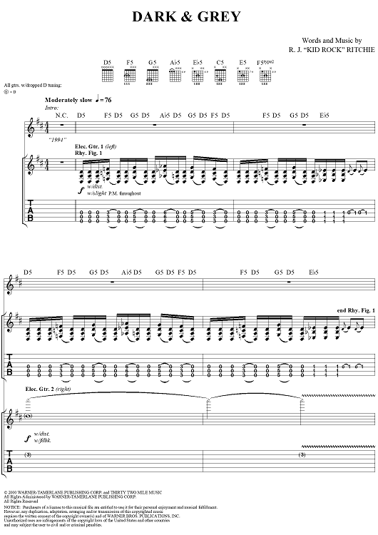 Digital Sheet Music for Dark & Grey by Kid Rock, R.J. ''Kid Rock'' Ritchie scored for Guitar Tab/Vocal; id:285850