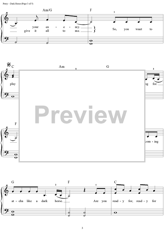 Digital Sheet Music for Dark Horse by Max Martin, Katy Perry, Lukasz Gottwald, Henry Walter, Sarah Hudson, Jordan Houston scored for Easy Piano/Vocal/Chords; id:447325