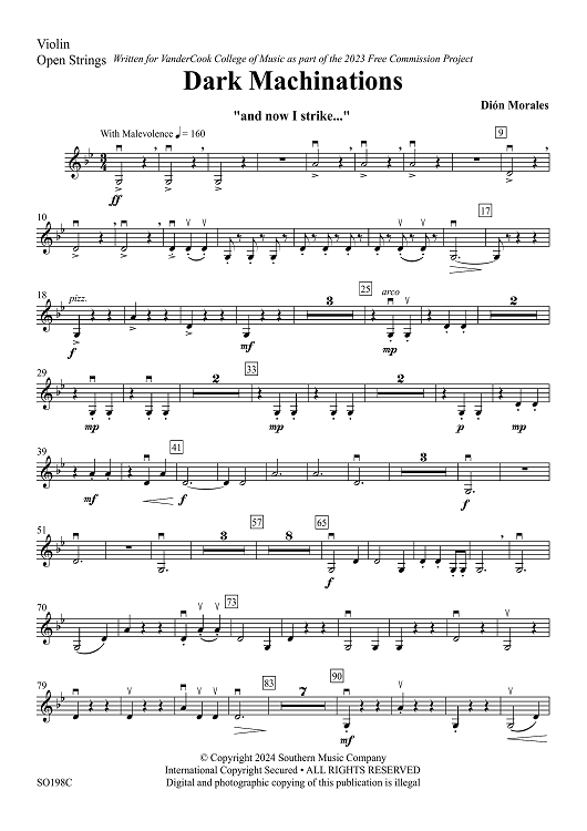 Digital Sheet Music for Dark Machinations - Violin Open Strings by Dion Morales scored for String Orchestra; id:506233